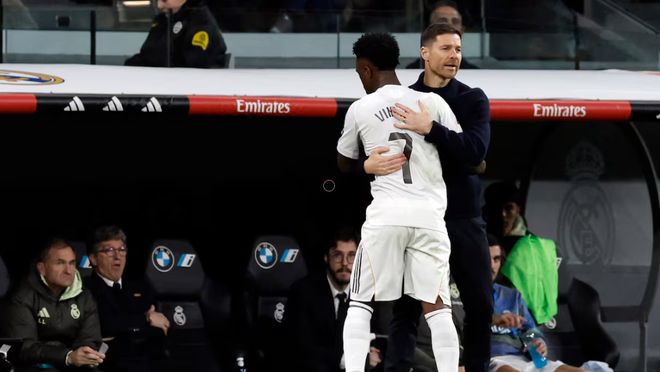 维尼修斯在被换下时,尽管听到了大量的口哨声,却未作任何反应,只是低着头走下球场,并与阿隆索教练致意。
